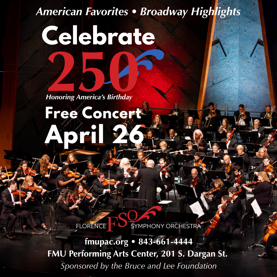 Join the Florence Symphony Orchestra for Celebrate 250, a free concert honoring America’s 250th anniversary.