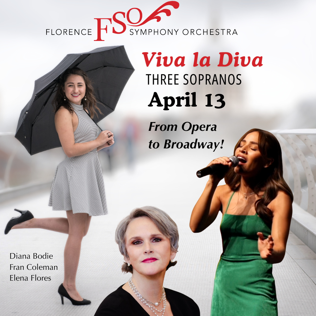 On April 13 join us for Viva la Diva: Three Sopranos, featuring Elena Flores, Fran Coleman, and Diana Bodie. This vibrant program blends operatic favorites with Broadway classics, showcasing the power, beauty, and brilliance of the human voice in music audiences know and love.